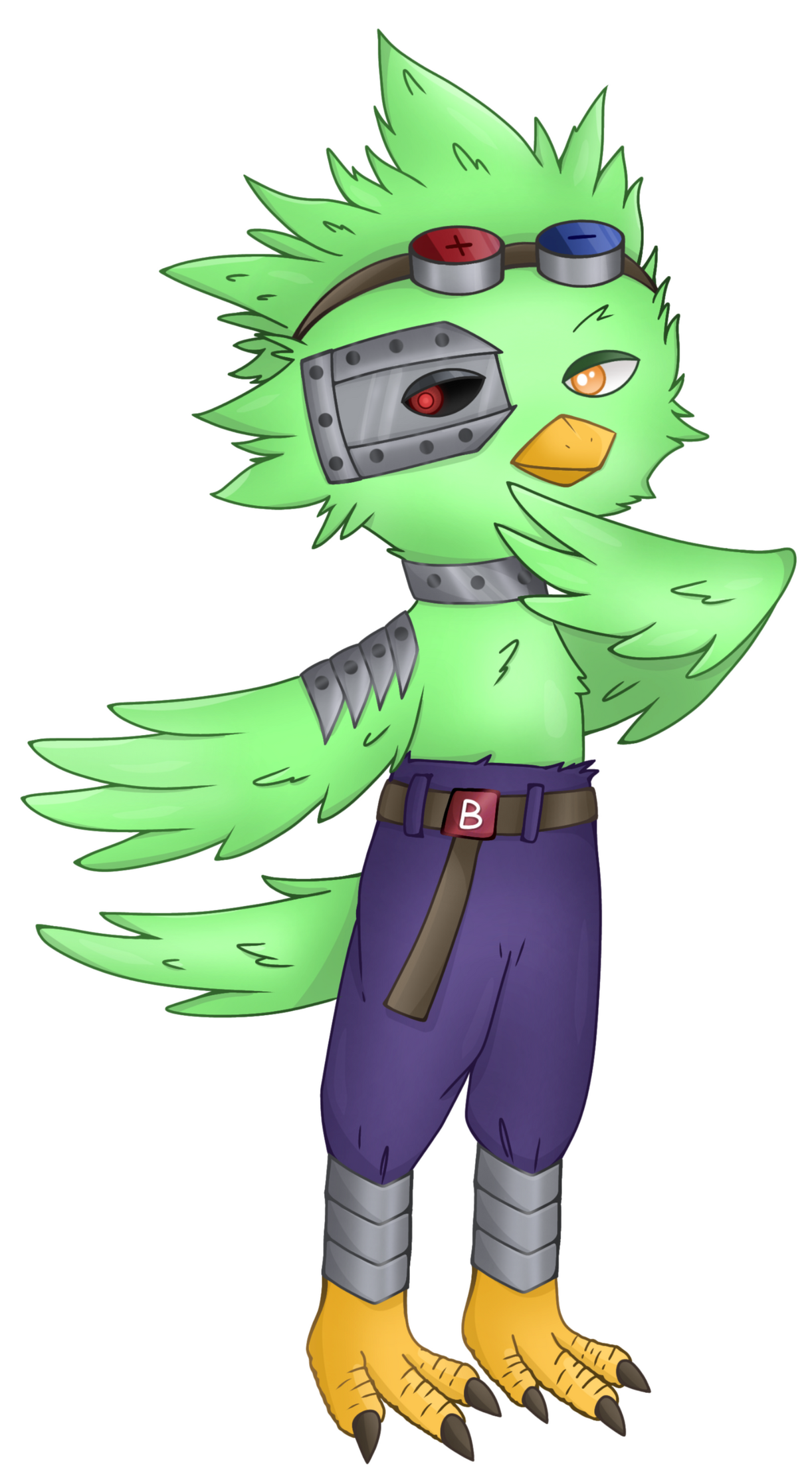 The green bird is an half robot, essentially born as a communication tower between the humanoid units and the spacecraft. He then becomes the operational captain to keep it in orbit in space, guiding it away from dangers and space monsters.