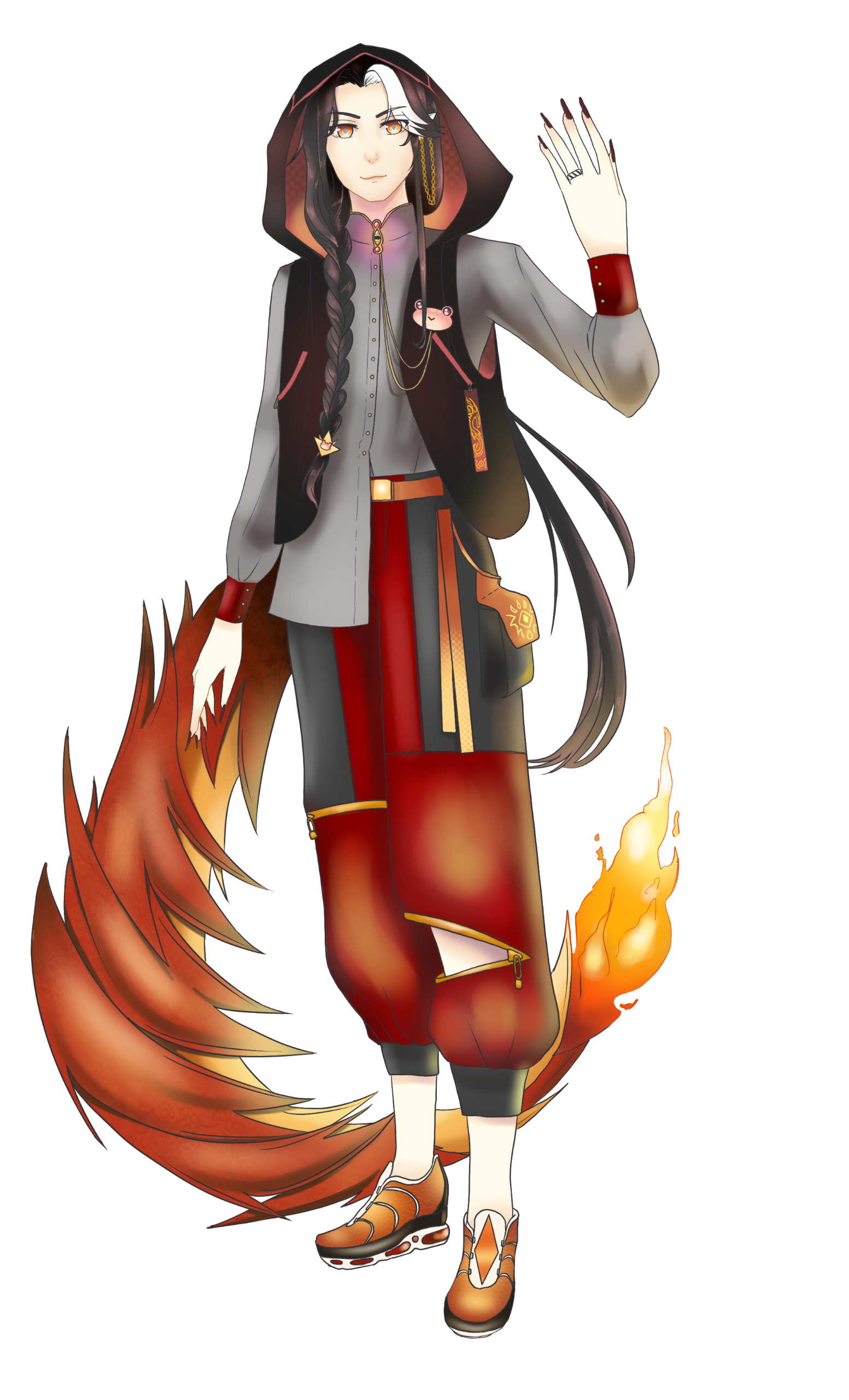 His true form is incomprehensible and manifests as a dragon or a tall dragonoid with long, black hair with reddish highlights and a white quiff, and a lean but handsome physique. In his infinite curiosity, he took in a newborn devilAYAcchi