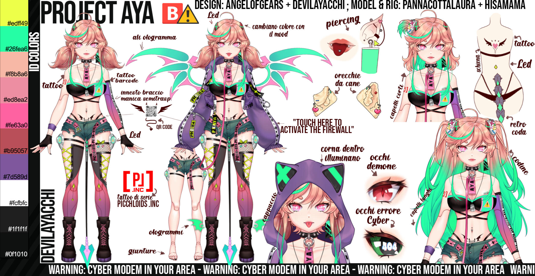 DevilAYAcchi commonly called AYA is an Italian cyber Modem VTuber, an humanoid girl who comes from the future and from space, born in a place called Cybernet, like what you can imagine as a deep web of demons-virus!